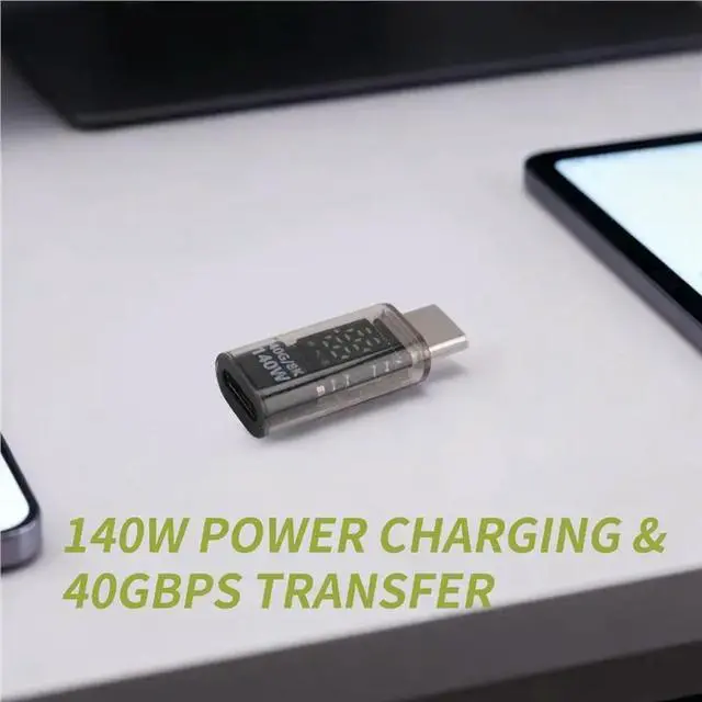 USB C Adapter LED Wattage Display 140W 40Gbps 8K USB C Extension PD 3.1 Type C Connector Type C Power Meter Tester