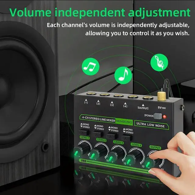 Mix400 Pro 4 Channel Professional Sound Mixer With RGB Light Mini Audio Mixer Line Mixer Small Audio Mixer For Club Bar