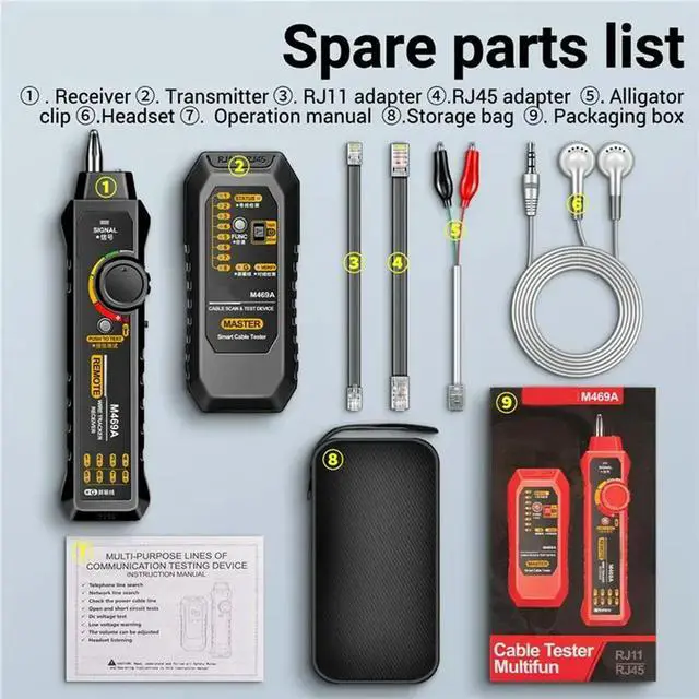 M469A RJ45 RJ11 Network Cable Tester Wire Tracker Toner Detector LAN Cable Tester Network Analyzer Line Test Tool A