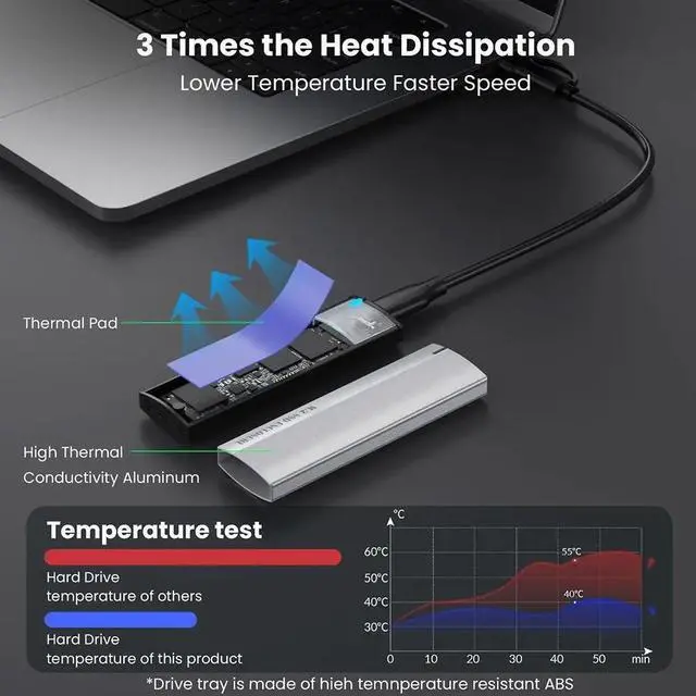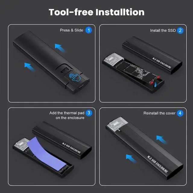 • [Tool-Free DesignTool-less] NVMe SATA NGFF chassis allows for quick and easy installation of M.2 NMVe SSD or M.2 SATA SSD. The first time you use an m.2 solid state drive SSD, you need to format the disk. It will be safe for your memory data.