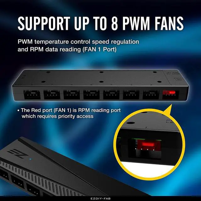 The fan hub can support up to 8 fans, including a total of 8 4-pin PWM ports and 8 ARGB ports for ARGB fans or ARGB devices.