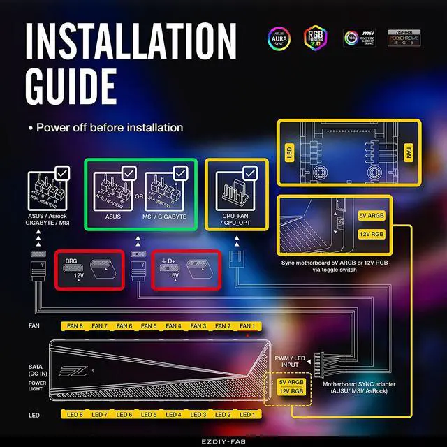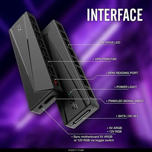 Supports 12V RGB/ 5V ARGB motherboard sync, by toggling little switch to achieve syncornize two ligthing system, compatible to AURA, RGB Fusion, Mystic Light, Polychrome. No built-in color modes, sync cable must connect to motherboard header.