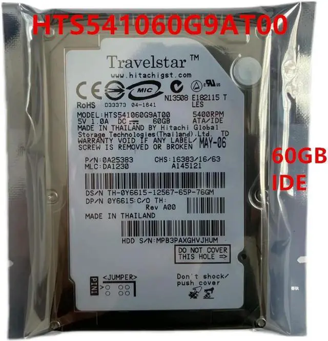 OwnShoe HDD For Hitachi 60GB 2.5" IDE 2MB 4200RPM 9.5MM For Internal Hard Disk For Notebook HDD For HTS541060G9AT00