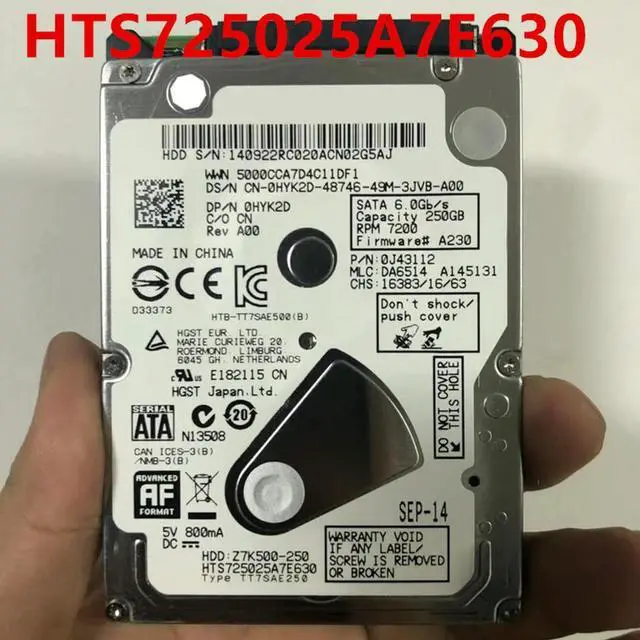 HDD For Hgst 250GB 2.5" SATA 32MB 7200RPM 7MM For Internal HDD For Notebook HDD For HTS725025A7E630