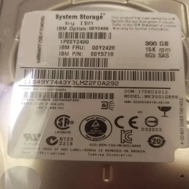 OwnShoe HDD For 300GB 2.5" SAS 6 Gb/S 64MB 15000RPM For Internal HDD For Server HDD For 00Y2428 00Y2499