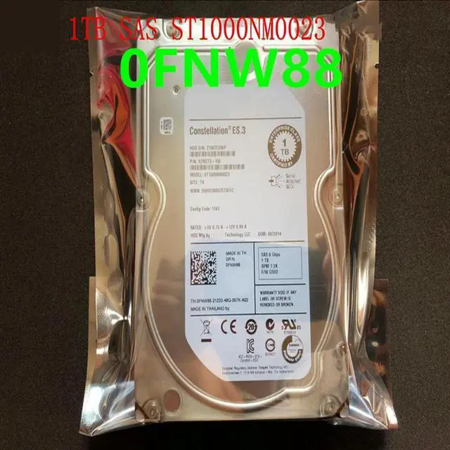 HDD For 1TB 3.5" SAS 6 Gb/S 64MB 7200RPM For Internal HDD For Server HDD For 0FNW88 FNW88 ST1000NM0023