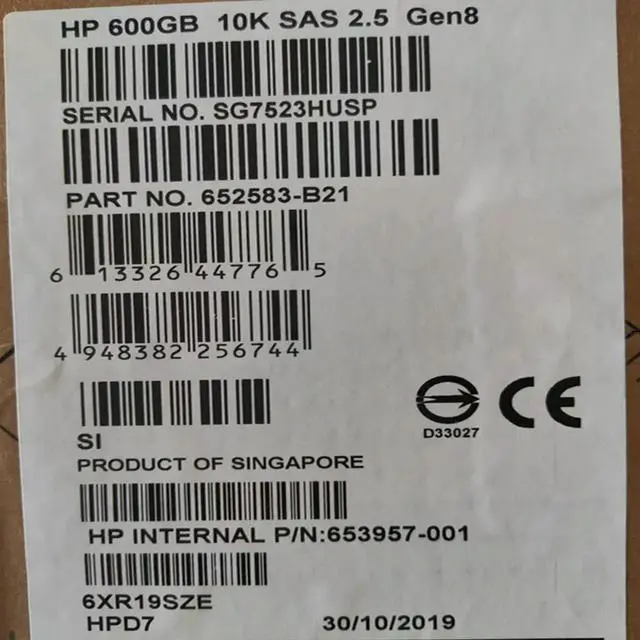 HDD For G8 G9 600GB 2.5" SAS 6 Gb/s 64MB 10000RPM For Internal HDD For Server HDD For 652583-B21 653957-001