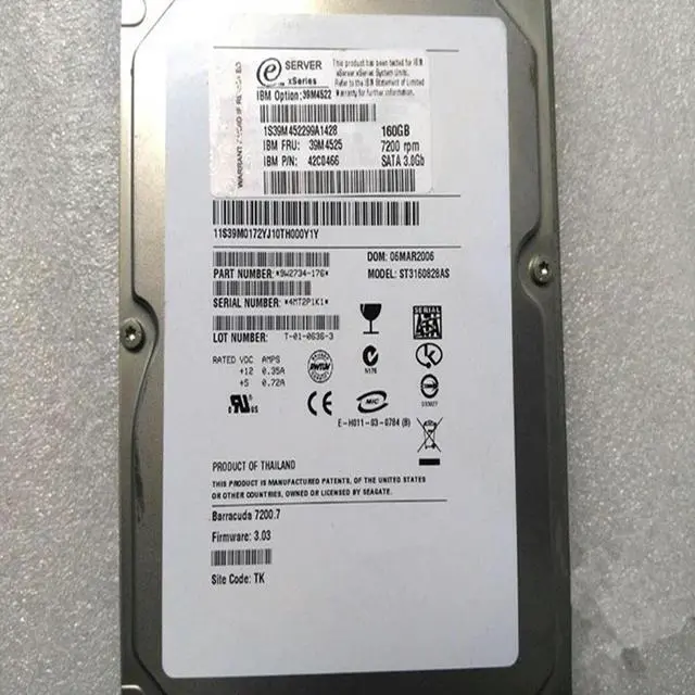 Almost HDD For 160GB 3.5" SATA 16MB 7200RPM For Internal HDD For Server HDD For 39M4522 39M4525 42C0466