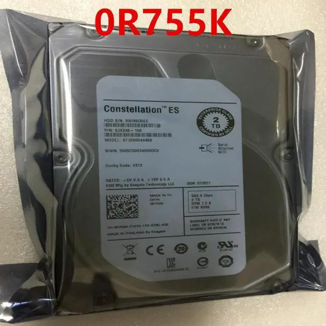HDD For 2TB 3.5" SAS 64MB 7200RPM For Internal HDD For Server HDD For R755K 0R755K ST32000444SS