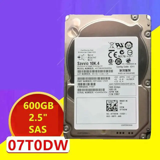 OwnShoe HDD For 600GB 2.5" SAS 6 Gb/S 64MB 10000RPM For Internal HDD For Server HDD For 7T0DW 07T0DW ST9600204SS