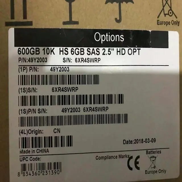 OwnShoe HDD For x3850 X3950 600GB 2.5" SAS 6 Gb/s 32MB 10000RPM For Internal HDD For Server HDD For 49Y2003 49Y2004 49Y2007