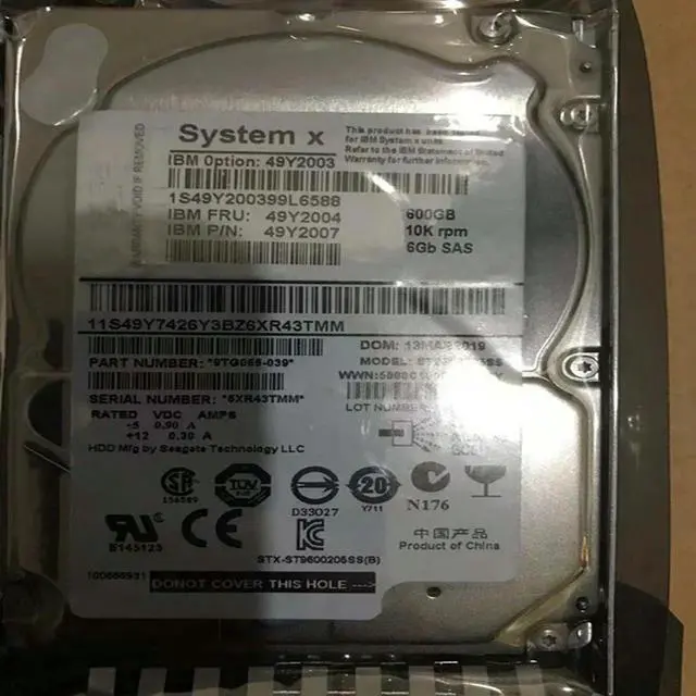 HDD For x3850 X3950 600GB 2.5" SAS 6 Gb/s 32MB 10000RPM For Internal HDD For Server HDD For 49Y2003 49Y2004 49Y2007