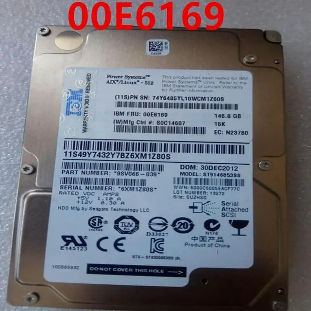 HDD For 146GB 2.5" SAS 16MB 15000RPM For Internal HDD For Server HDD For 00E6169 74Y6485