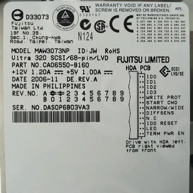 OwnShoe Almost HDD For Fujitsu U320 73GB 3.5" SCSI 68Pin 8MB 10000RPM For Internal HDD For Server HDD For MAW3073NP