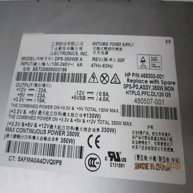 Almost PSU For DL120G5 350W Switching Power Supply DPS-350WB A 468303-001 480507-001