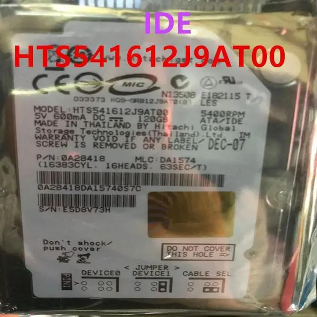 HDD For Hitachi 120GB 2.5" IDE 8MB 5400RPM For Internal Hard Disk For Notebook HDD For HTS541612J9AT00