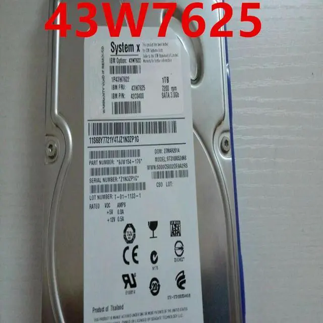 HDD For X3100M3 X3200M3 X3250M4 1TB 3.5" SATA 64MB 7200RPM For Internal HDD For Server HDD For 43W7622 43W7625