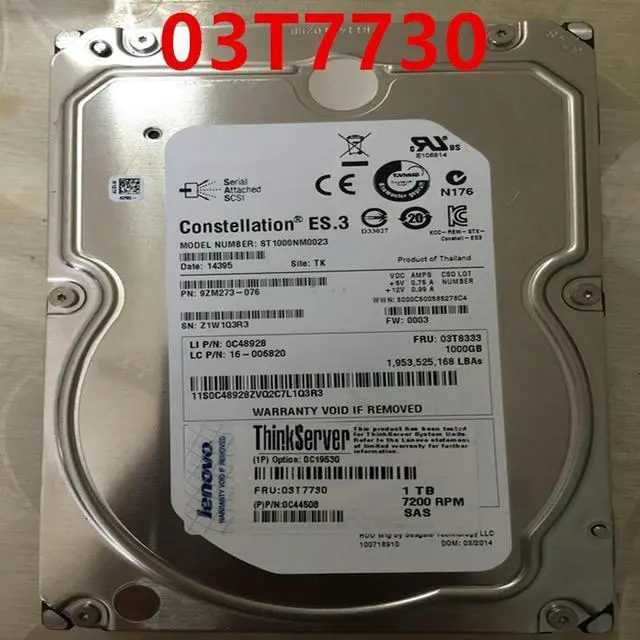 OwnShoe Almost HDD For 1TB 3.5" SAS 64MB 7.2K For Server HDD For 03T7730 0C48928 ST1000NM0023 16-006820 0C19530