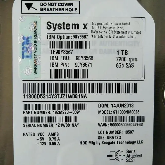 HDD For X3300 X3650 M4 1TB 3.5" SAS 64MB 7200RPM For Internal HDD For Server HDD For 90Y8568 90Y8571 90Y8567