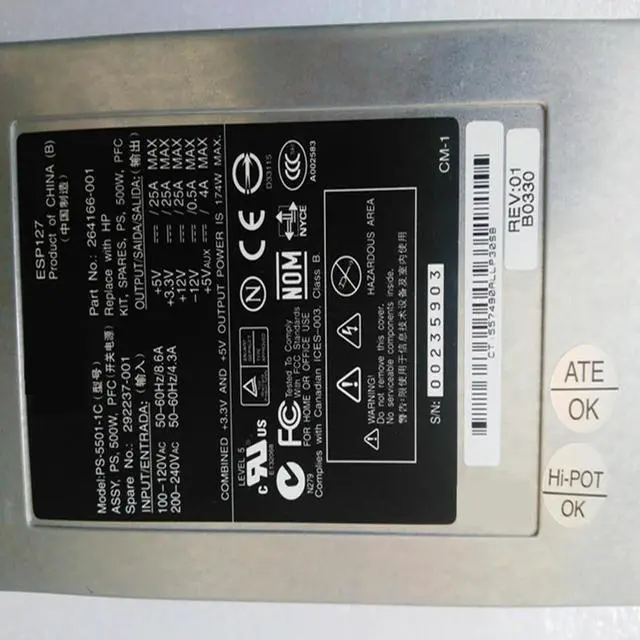 Almost PSU For ML350G3 500W Switching Power Supply PS-5501-1C 264166-001 292237-001