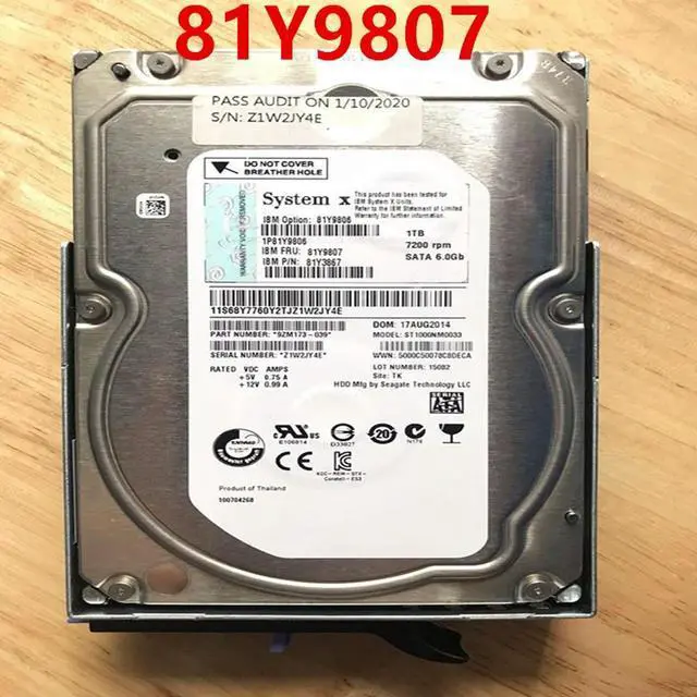 HDD For X3100M5 X3250M6 1TB 3.5" SATA 64MB 7200RPM For Internal HDD For Server HDD For 81Y9806 81Y9807 81Y3867