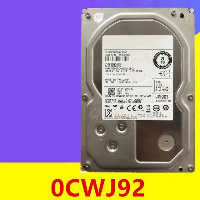 HDD For 3TB 3.5" SAS 6 Gb/s 64MB 7200RPM For Internal HDD For Server HDD For CWJ92 0CWJ92 HUS723030ALS640