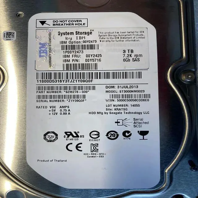 OwnShoe HDD For V3500 V3700 3TB 3.5" SAS 64MB 7200RPM For Internal Hard Disk For Server HDD For 00Y2425 00Y2473 00Y5716