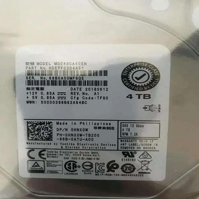 HDD For 4TB 3.5" SAS 12 Gb/s 128MB 7.2K For Internal HDD For Enterprise Class HDD For HNX0W 0HNX0W MG04SCA40EN