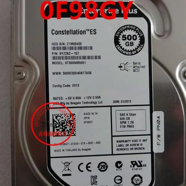 Almost HDD For 500GB 3.5" SAS 6 Gb/s 7200RPM For Server HDD For ST500NM0001 F98GY 0F98GY