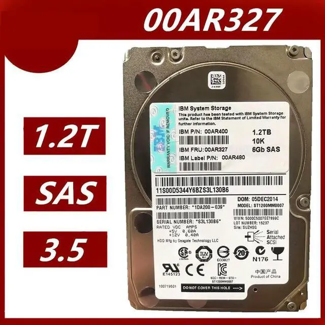 HDD For 1.2TB 2.5" SAS 6 Gb/S 64MB 10000RPM For Internal HDD For Server HDD For 00AR327 00AR400 00AR480