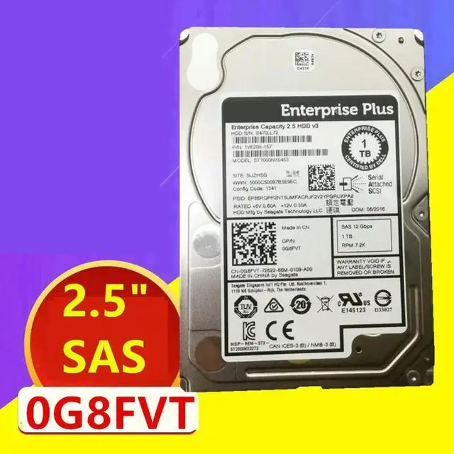 HDD For 1TB 2.5" SAS 12 Gb/S 128MB 7200RPM For Internal HDD For Server HDD For 0G8FVT G8FVT ST1000NX0453