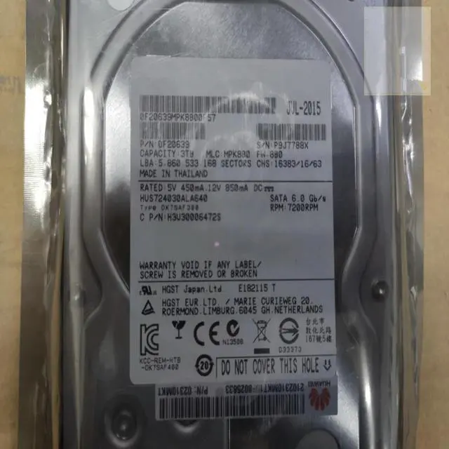 HDD For 3TB 3.5" SATA 64MB 7200RPM For Internal HDD For Server HDD For 02310MKT HUS724030ALA640