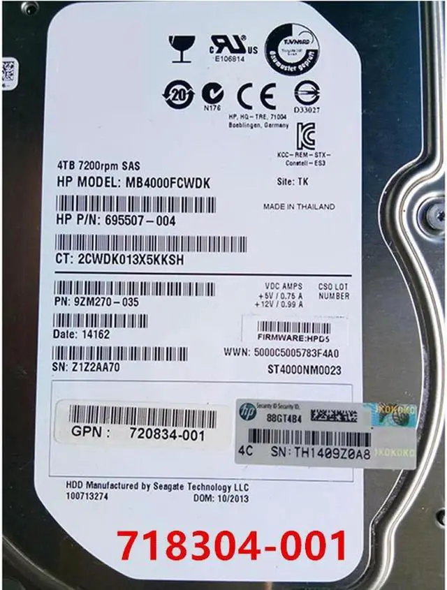 OwnShoe HDD For M6612 4TB 3.5" SAS 12 Gb/S 64MB 7200RPM For Internal HDD For Server HDD For C8R31A 718304-001