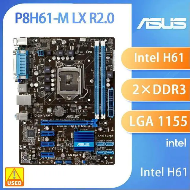 LGA 1155 Motherboard P8H61-M LX2 R2.0 for 2nd 3rd Gen Core i3 i5 i7 Processors 2x DIMM Max. 16GB DDR3 Micro ATX Mainboard