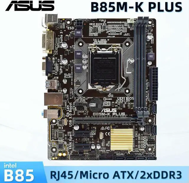 B85M-K PLUS LGA 1150 Socket Supports 4th Gen Core i3 i5 i7 B85 Chipset 2x DIMM Max. 16GB DDR3 Micro ATX Form Factor