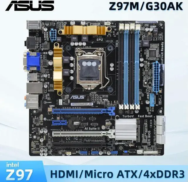 Z97M/G30AK/DP_MB Socket LGA 1150 Supports 4th Gen i3 i5 i7 Z97 Chipset 4x DIMM Max. 32GB DDR3 Micro ATX Motherboard