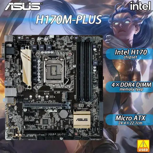 H170 Motherboard H170M-PLUS Micro ATX Form Factor Supports Core i3 7100 i5 7400 7500 i7 7700 4x DIMMs Max. 64GB DDR4