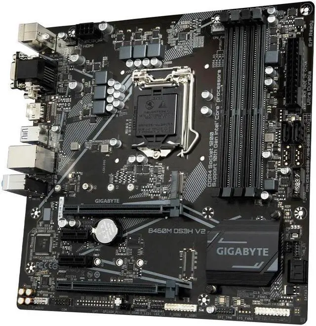 B460M DS3H V2 LGA1200 4xDDR4 DIMM 128 GB PCI-E 3.0 1x M.2 SATA 3 USB 3.2 HDMI DVI-D VGA RJ-45 Micro ATX Motherboard
