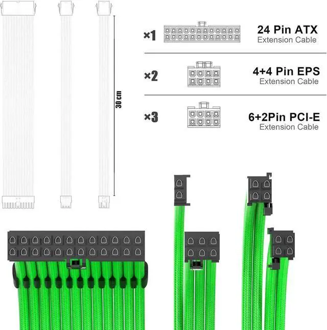New Generation PSU Cable Extension -The length of each power cable is 30cm. PSU cable kit uses Triple Layer Weaving design and is wrapped with super soft silicone, which can be easily formed into the desired shape. Through market research, we found that other brands of PSU extension cable kits are difficult to bend. Due to processing problems, products of other brands are prone to produce odor when used at high temperature. cable kits have effectively improved this situation.