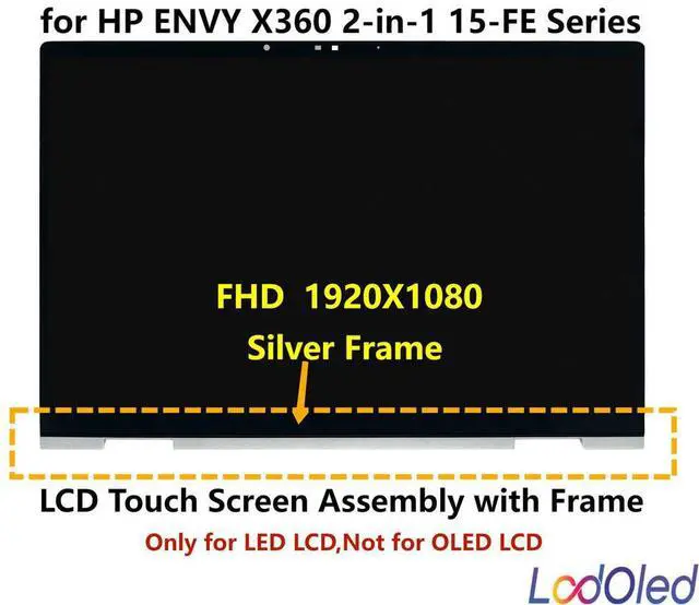 FOR 15.6 LED FHD for 2-in-1 15-fe1000 LCD Screen Display Digitizer Assembly + Frame (Silver) 1920x1080 30pin 60hz