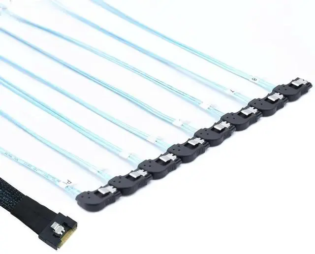 FOR 4.0 SFF-8654 8i to 8-port SATA Left Angled Adapter Cable