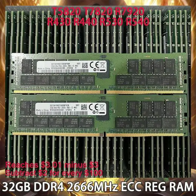32GB DDR4 2666MHz ECC REG RAM For T5820 T7820 R7920 R430 R440 R530 R540 Server Memory