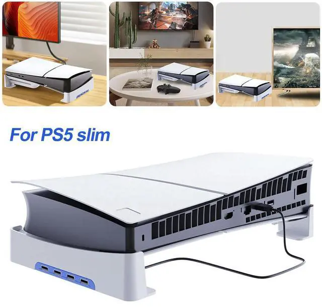 For Slim Base Stand Side Stand Base Stable with 4-Port USB 2.0 Hub Host Rack Holder Anti-Slip Mads Horizontal Holder
