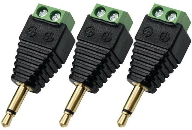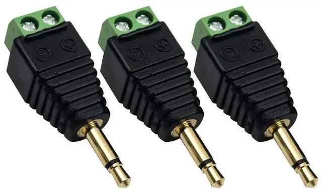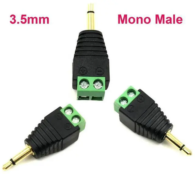 3pcs Adapter Converter 3.5mm 1/8" TS Mono Male Plug To 2 Pin AV Screw Video AV AUX Balun Speaker Wire Screw Terminal Solderless