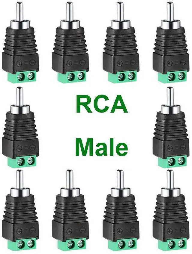 10pcs Phono RCA Male Plug To AV Screw Terminal Plug Audio/Video Speaker Wire Solderless Adapter Connector CCTV Video AV Balun