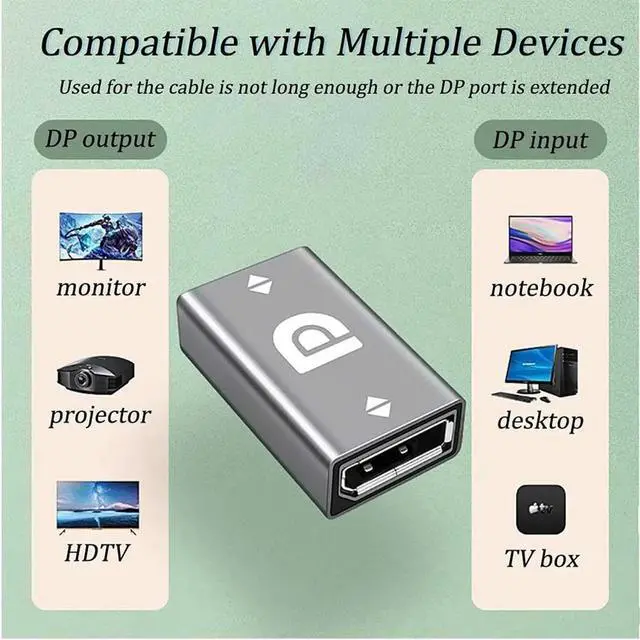 Displayport Adapter 8K DP Female to DP Female Extention Coupler Convertor Connector DP 1.4 for DP Cable Extension Transfer