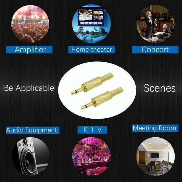 1pc Replacement 3.5mm Mono TS 2 Pole Male Plug Audio Coax Cable Solder Gold Adapter Connector DIY for Repair Headphones Headset