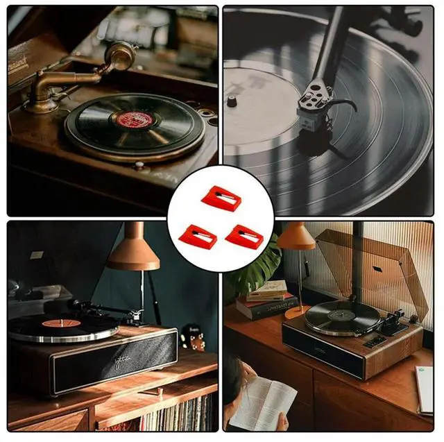 Record Player Needles Replacement Stylus With Cleaner Brush For Vinyl Record Player Phonograph 4Piece