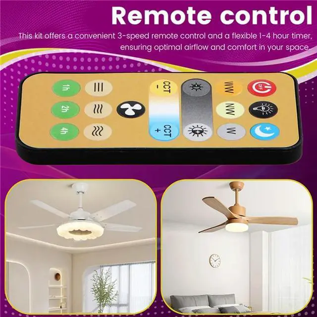 For E27 Ceiling Fan Light For E27 Ceiling Fan Light 3-Speed Timing Remote Control 1-4H Timing Remote Control
