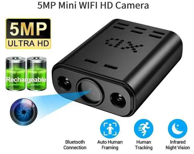 Remote Monitoring Camcorder 5MP HD Mini Camera IP Built-In IR Night Vision Body Cam Human Tracking